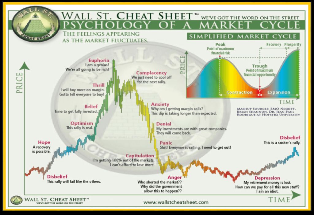 Wall Street Cheat Sheet has created the Psychology of a Market Cycle graph to show investors' changing emotions based on the price and time. The graph below shows a wave pattern that illustrates how layers of complexity can accumulate when considering a spectrum of emotions and incorporating elements such as buy/sell calls, diversification options and various strategic components.