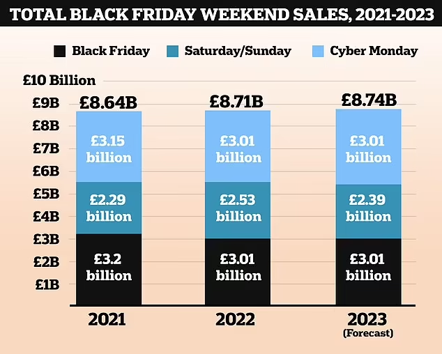 Black Friday's impact reaches luxury retailers like Harrods and Selfridges, where opulence meets the retail frenzy. This intersection of luxury and discount-driven shopping reflects evolving consumer dynamics during the annual extravaganza. Research by VoucherCodes suggested that over the four-day weekend, including Cyber Monday, shoppers will spend £8.74 billion both in-store and online. Spending on Black Friday is expected to be at £3.01 billion this year.