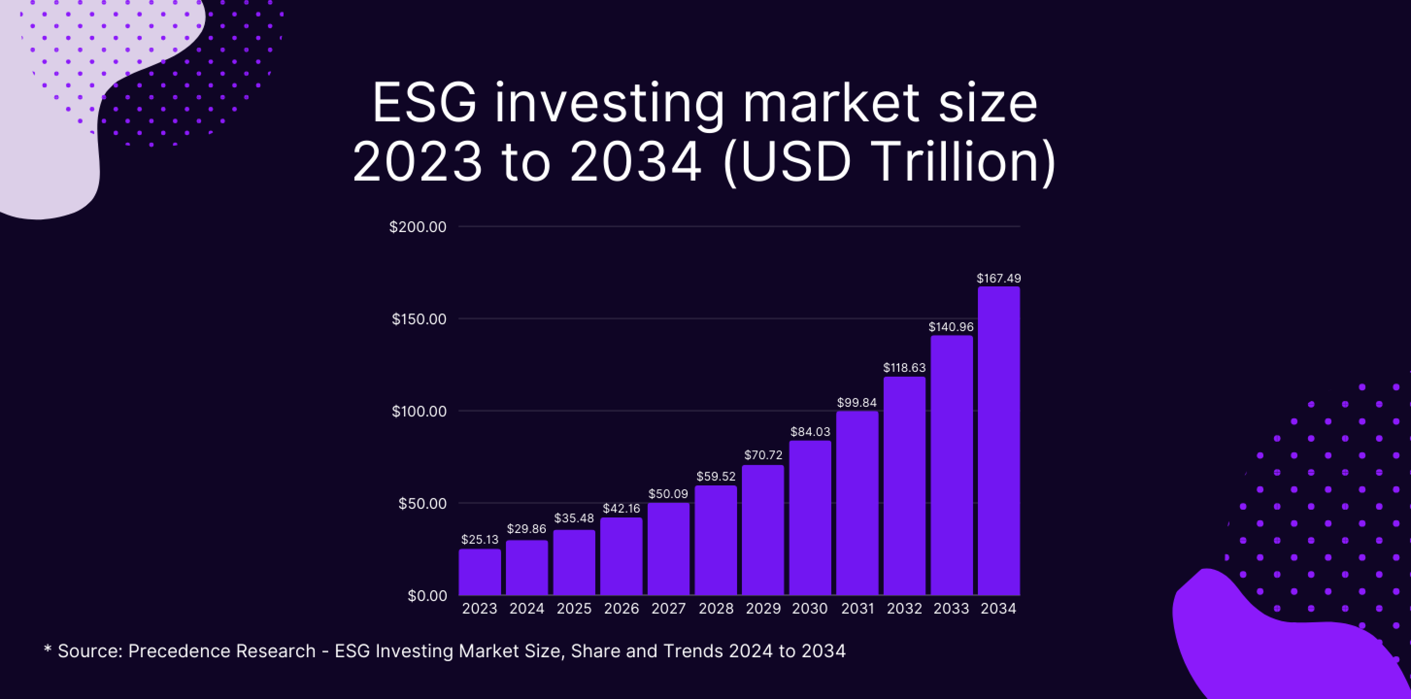 Graph source: Precedence Research - ESG Investing Market Size, Share and Trends 2024 to 2034